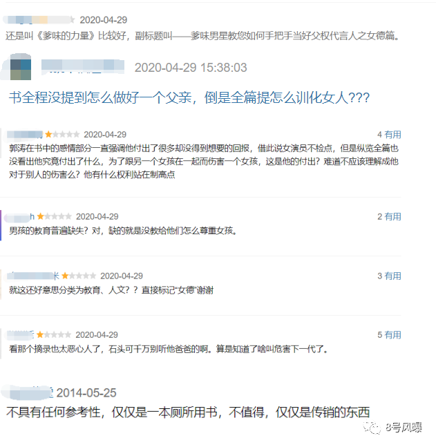 书评直言改成《爹味的力量》比较好,“女德”成为了评论的关键词。