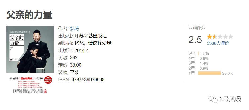 会不会恰好就有不明所以的人路过,因为封面印着的是郭涛,一位成功男演员;书籍的定位又是“父亲育儿”,便买下仔细研读一番,潜移默化下,没准觉得这些理论还挺有道理。