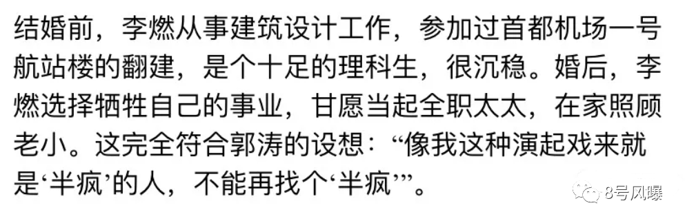 在他书中有部分内容来自于妻子李燃的手笔,在李燃的笔下,也描述了郭涛对自己的赞赏。