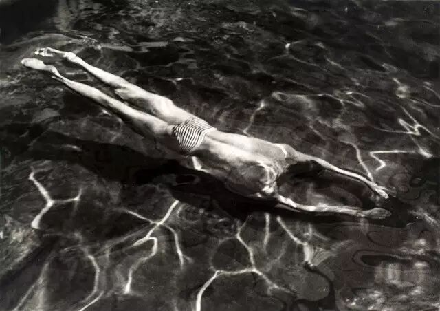 此次展出的匈牙利大师 André Kertész 名作,记录了一位泳者的水下瞬间