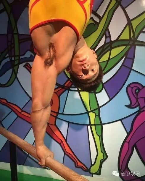 蜡像的造型师估计是想cos他跳水的造型,就给整了个倒立的造型!