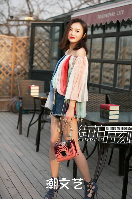 秦岚街拍的时候,也选择了这一件,搭配牛仔短裤。