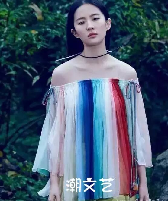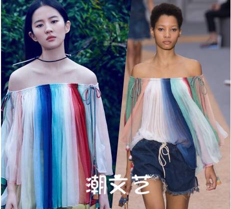 最近,听说一大波明星都选择了这件彩虹一字肩上衣。