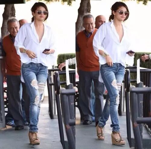 对于脸胖脸大的妹子来说,服装一定要尽量挑选领口大的,而且切记不能把脖子包住。看赛琳娜·割麦子穿的这两套衣服,把脖子一刀切断显得又短又粗不说,还把脸硬生生撑大...▼
