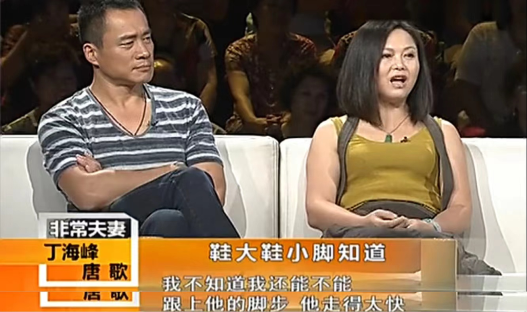 2011年,“武松”丁海峰带着妻子唐歌参加了综艺《非常夫妻》,唐歌就丁海峰与女演员演亲密戏说了这样一番话: