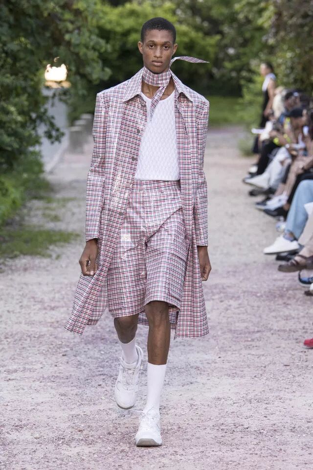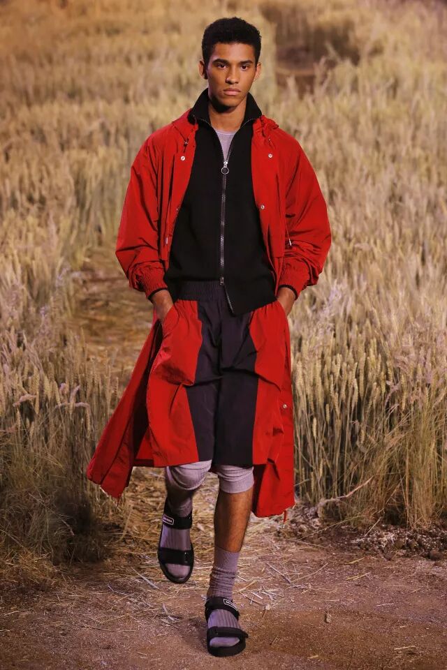 设计师本季仍然延伸了一些经典元素,廓形外套、硬朗上的材质以及线条感长衫,在材质的选择上以“柔中带刚”的面料和廓形凸显形象。男孩儿在树丛里游走,2019年春天的神秘和美好,是为即将到来的冒险整装待发。