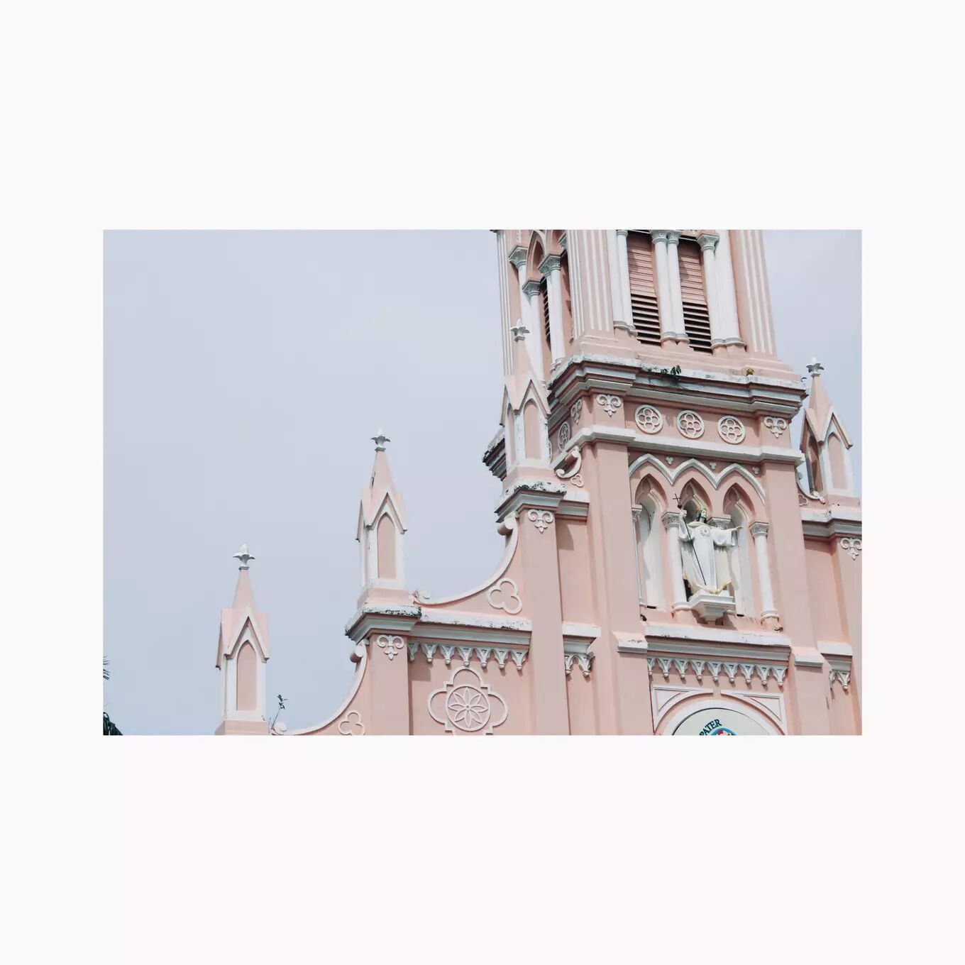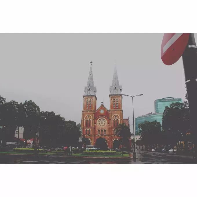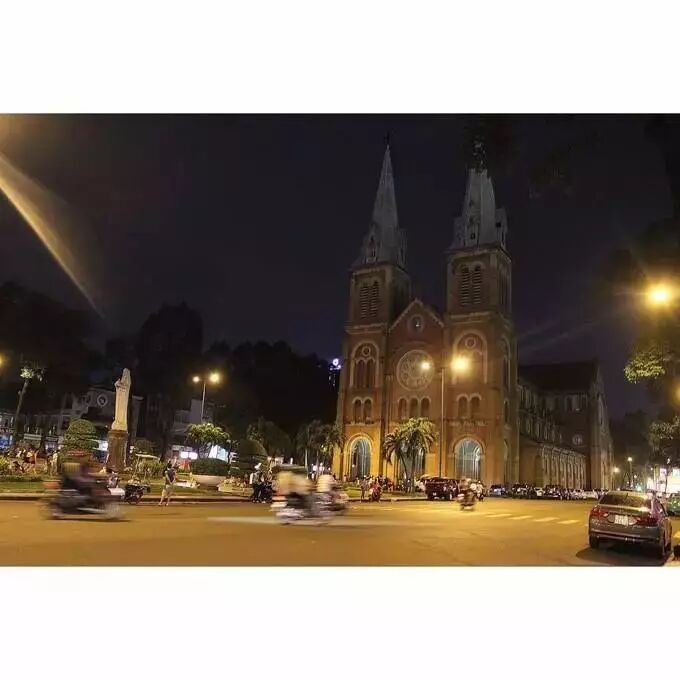 在青旅放下摩托车之后,要来开水,去青旅楼顶吃泡面。意外的发现岘港的地标性建筑粉红大教堂就在青旅斜对面,也正好赶上撞钟。