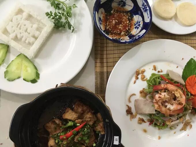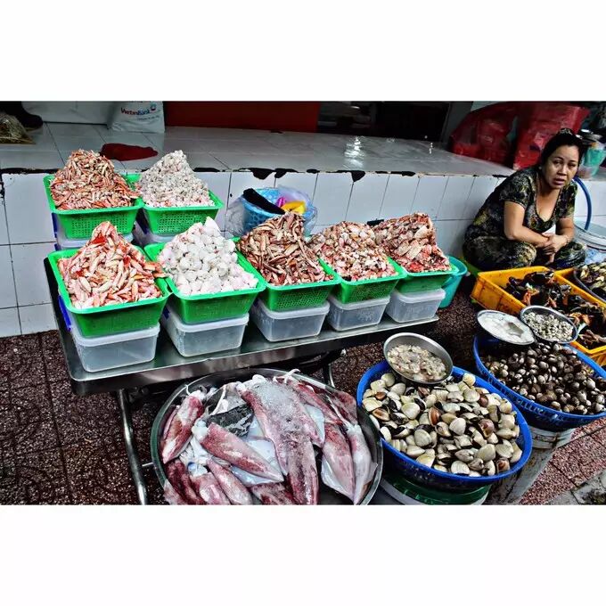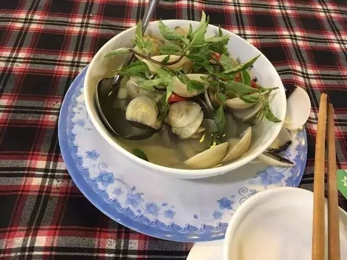 期间一直有卖各种水果的人来兜售,大概看我一个人吃饭也没有尽力叫卖,把力气省着去更多人更有赚头的桌子。海鲜保持原有的鲜味,用清水煮,再加上越南特有的柠檬草调味即可,再配上一瓶啤酒,一个人吃饭也是很有味道的,吃的脸红发胀,看着一桌桌大部分都是中国人慕名前来。
