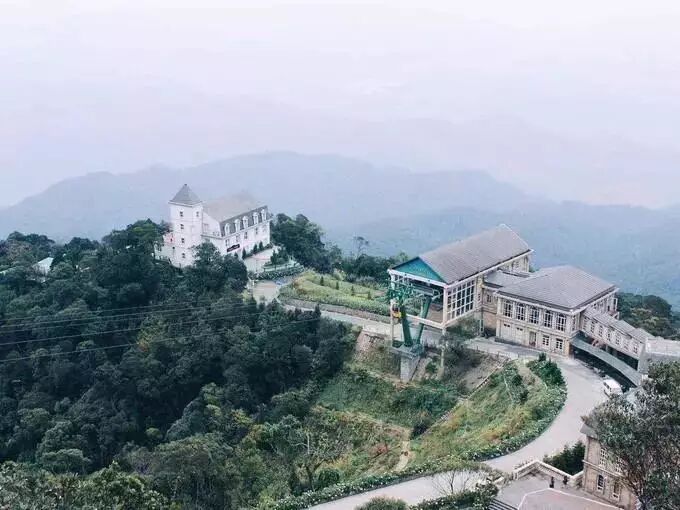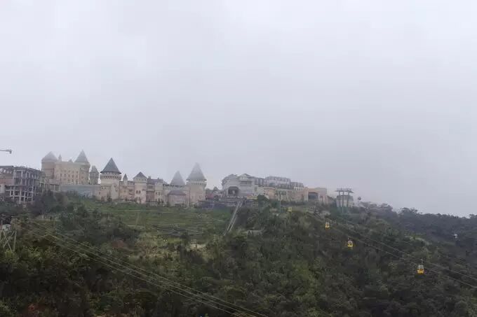 一日游的团大约人民币300元左右,算贵的了,包含门票、往返车、导游和中午的自助餐。通行的还有另外9人,巴拿山听导游介绍说取名由来是当时种了很多香蕉树,因此得名Ba Na Hills。山上是一派法式风情,虽然人工痕迹略重。山上有一座佛像,仿佛庇佑着整座山的生灵。