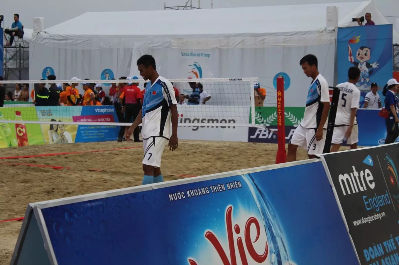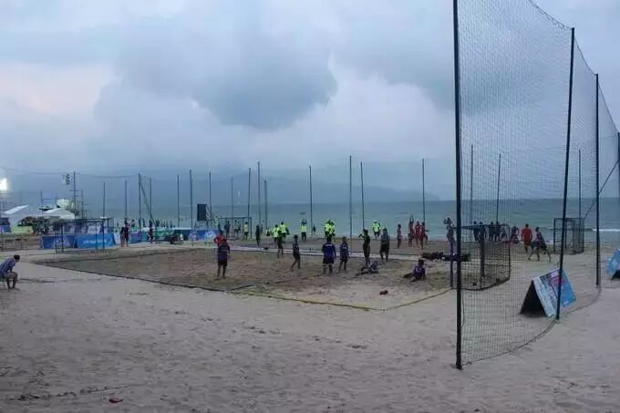 回去的时候准备去幸福姐2号吃海鲜,由于到达太早,幸福姐2号还没有开门,于是到最近的美溪海滩区走走沙子拍拍照,碰巧碰上The 5th Asian Beach Games,不同国家的队伍在比一种只可以脚和头碰撞的球,现代蹴鞠。还偶遇了坐同一班航班的中国队,教练说明日同一个地方比赛,而我已经订好到巴拿山的行程,无法现场加油。
