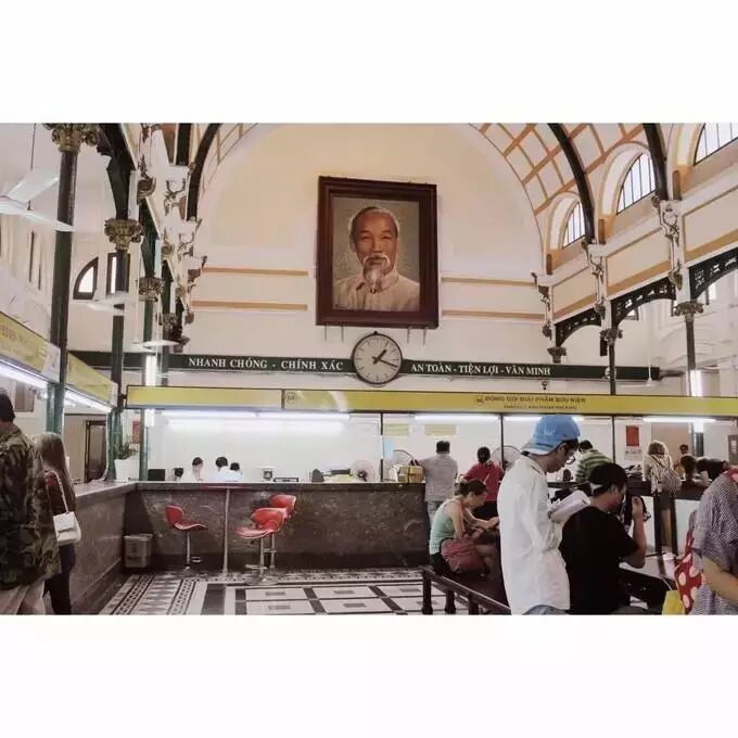 拿车之后前去统一宫,统一宫比较像白宫了,中心的草地和喷泉,值得一提的是建筑是仿造汉字“吉”、“兴”、“中”建造的,里面是胡志明以前处理政事、接待外宾和住的地方。好玩的是直接从总统的书房可以直接通向bunker,保护炸弹时期的总统的周全。后来听homestay的主人说,其实统一宫还有一条秘密通道没有向公众开放,是一条可以行车的秘密通道,直通机场,以防有事发生总统可以直接逃生。