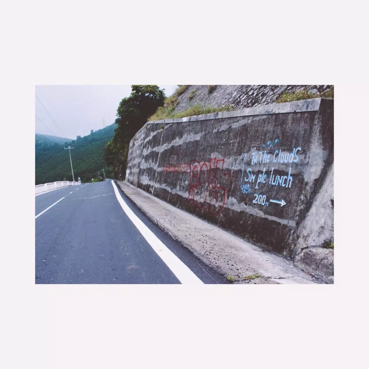 但是沿着盘山公路的路是值得一看的,临时山顶的时候,前人留了一句话在岩壁上“Into the Clouds,200m",心里想着有这么夸张吗,然后转眼就看见一片云从山顶飘过来,遮住了山峰,那一瞬间立刻起鸡皮疙瘩,这一个时刻完成了我对岘港的记忆。会安不要去,市内也一般,只灵姑湾、海云关值得所有的走错路和摩托车上孤独的时光。