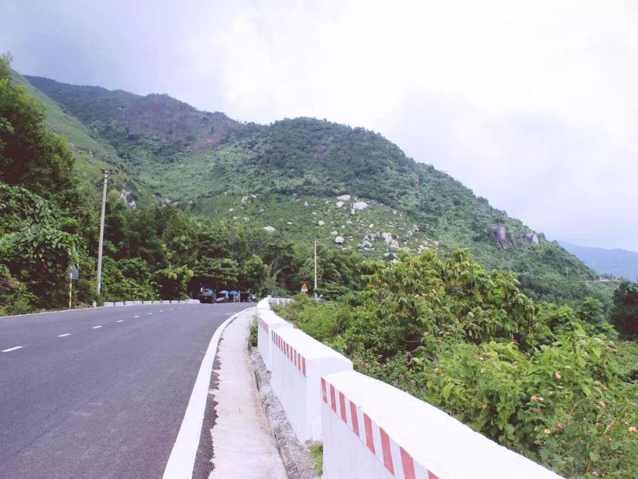 中午去岘港排名第三的Lemoncella吃饭,青旅附近的一个意大利餐厅,有一些过誉了,Pasta并不好吃。吃完之后起身去拿摩托车去灵姑湾。又再次爆骑了40公里左右到达海云关的盘山公路,全副武装天气却是阴天,一路上风景眺望灵姑湾,风景就是盘山公路的风景,比起Portland差一些,只因Portland有拐角即可看见的雪山,海云关的山差些,像是湖南境地到处都有的山。