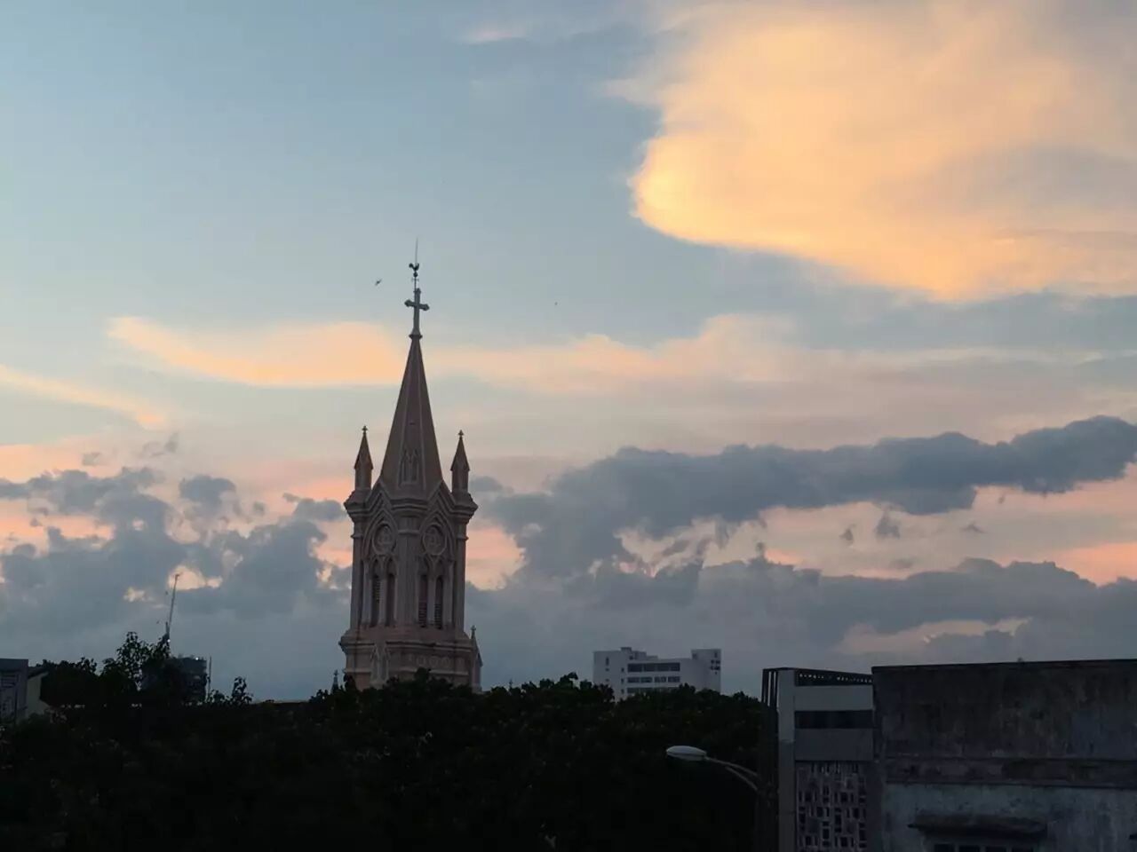 ▲顶楼黄昏时对面的粉红大教堂,未P图的美景。