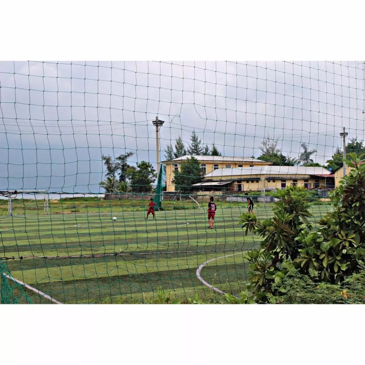 ▲走错去顺化的高速,却偶遇了在踢足球的当地少年。