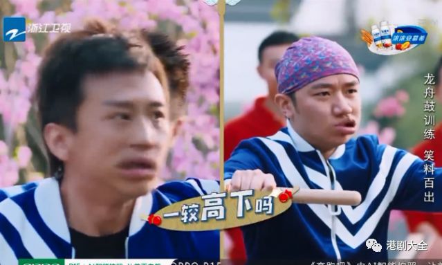 扒龙舟唔系佢强项,不过到打鼓环节,王祖蓝终于重振雄风,攞起支棍好有气氛打拍子,即时俾魔鬼教练由闹变赞,俾佢负责带动士气嘅鼓手位。无聊位系佢同邓超齐当龙舟鼓手,斗嘅唔系只艇有几快,而系闹打鼓夸张表情,块面可以震荡频率有几高,总算系咁辛苦嘅练习中,揾到自娱位。