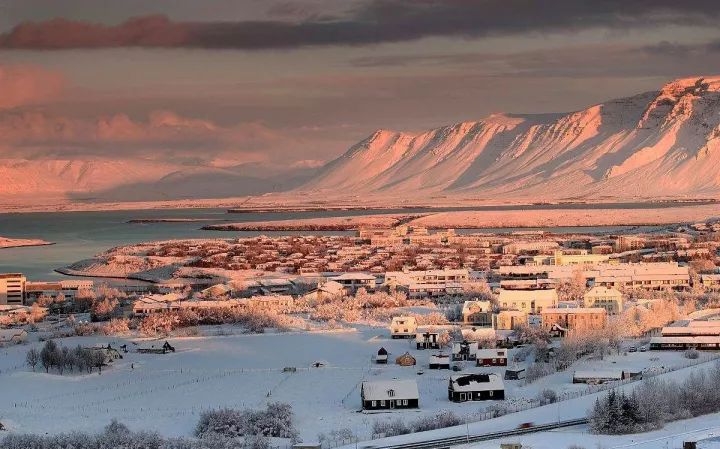 冰岛首都雷克雅未克,四面环海,离北极圈很近,世界上纬度最高的首都。不过此地虽地处高纬,但由于受北大西洋暖流的影响,这里的气候并不严寒,1月份平均气温也在0℃左右。