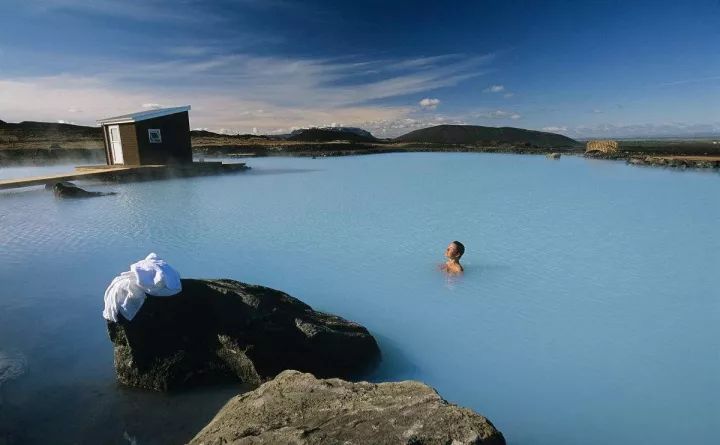 如果在蓝湖温泉没看到极光,可以去冰岛北部的米湖温泉(Myvatn Nature Baths)碰碰运气。和名声在外的蓝湖温泉相比,面积稍小的米湖温泉的游客更少,更适合泡着等极光。另外,米湖很多酒店还有极光唤醒服务,如果极光出现,酒店工作人员会把你叫起来,非常省心。