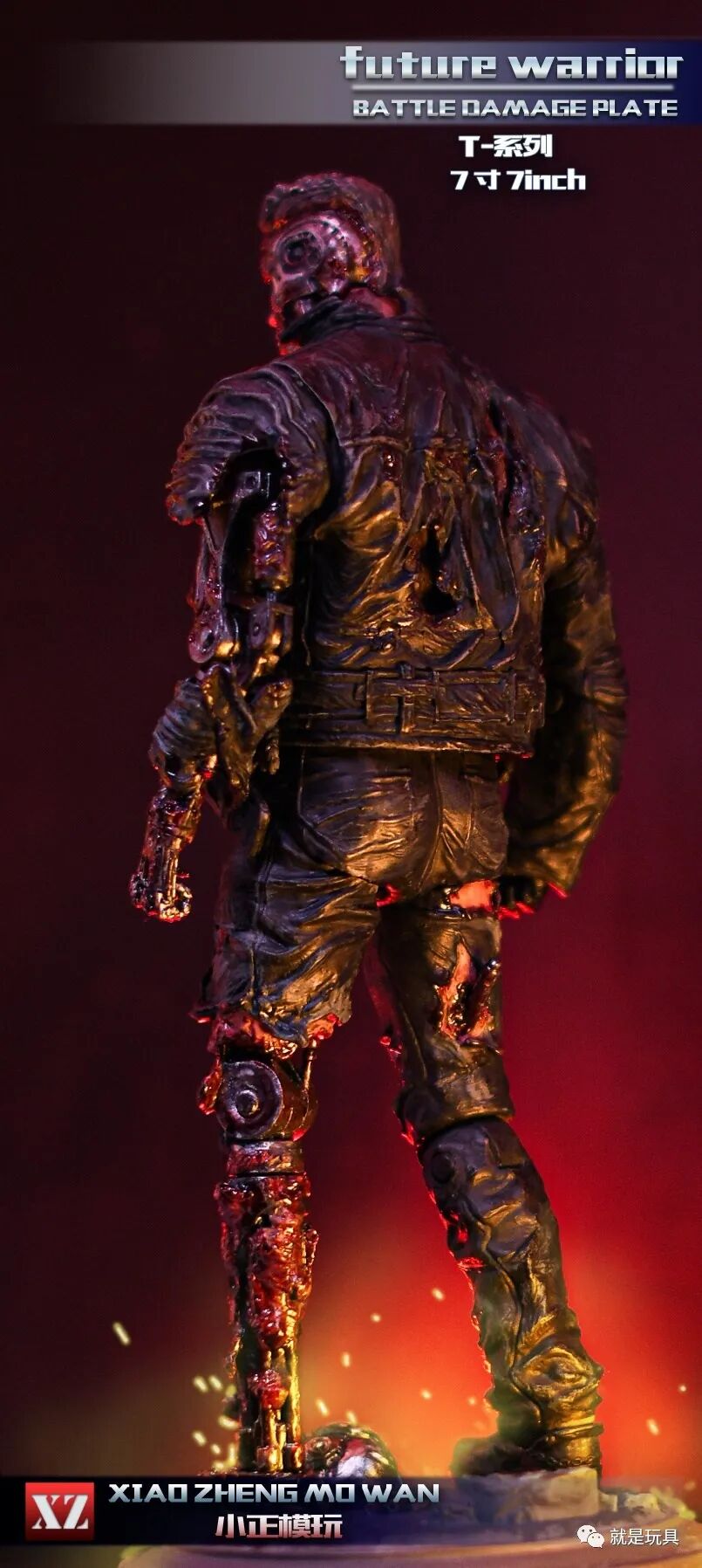 背后视角更加血腥,甚至有点僵尸片感觉哈!因为机械手臂与重度战损刻画,这款T-850的关节并不十分明显,视觉观感很不错