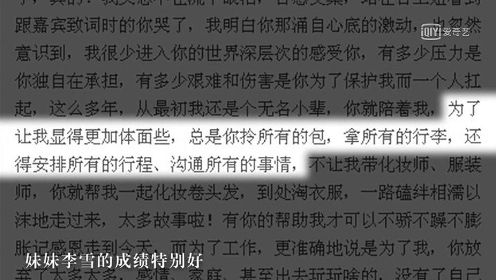 一年之后,李雪考入浙传,离李冰冰距离很近。她从小和姐姐感情就很好,当初李冰冰在上海念书,拍广告时,品牌方会送一些吃的,李冰冰会一直攒着,不断托老乡带给李雪, 甚至有的攒得太久,连保质期过了都不知道。