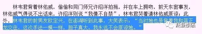 当时特别狗血的是,还有林韦君前男友欧定兴出来爆料,说林韦君当年还背着他和蓝正龙交往!