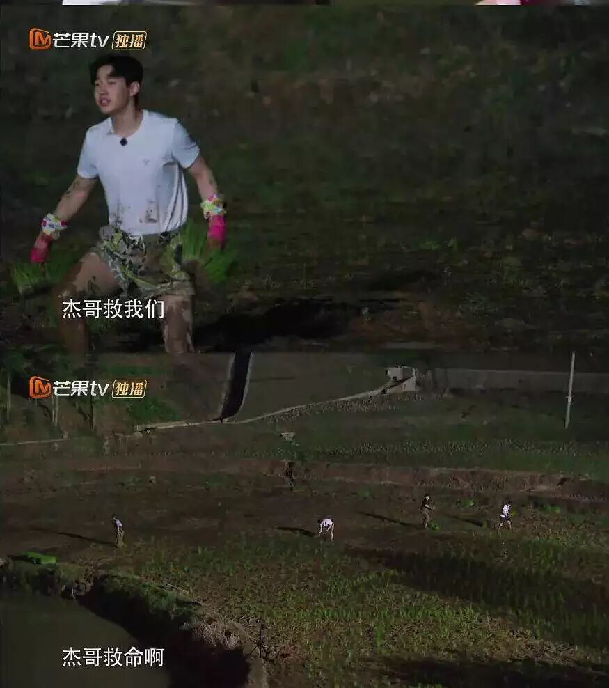 等到晚饭的准备工作都做好了,黄磊让张杰去田里看看插秧队。干过农活的童鞋一定都知道插秧的辛苦,一直弯腰抬腰从天亮干到天黑,时不时还会把腿陷进泥田里拔不出来,所以张杰去到泥田的时候,刘宪华大呼:“杰哥救我们!”
