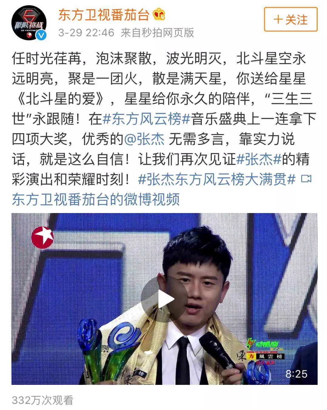 前段时间张杰在东方卫视拿了奖,发微博感谢时说:“无论走多远,东方永远是家”。