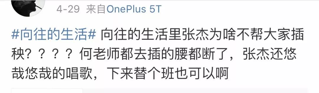 豆瓣和微博上的吃瓜群众,吐槽张杰最多的,就是他一个身强力壮的大男人只干帮厨这样的轻巧活,而不去做下田插秧这样的体力活。