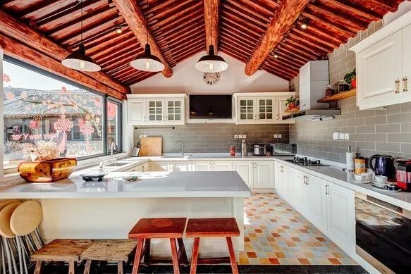 小院满足6—8人的住宿,最大的亮点是奢侈的公共活动空间。房东牺牲了更多的客房,留下40平米的超大餐厨,备齐了锅碗瓢盆、柴米油盐,静看袅袅炊烟升起,那溢满了生活的味道里,仿佛飞舞着美好的日子。