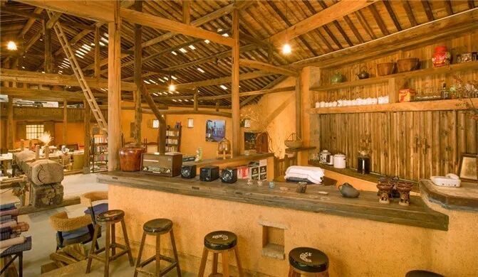 猪栏酒吧在徽州共有三栋房子。一吧在西递,二吧在碧山村里,三吧的原址是废弃的碧山油厂,相隔都不远。小酒吧风格复古、朴素而时尚。