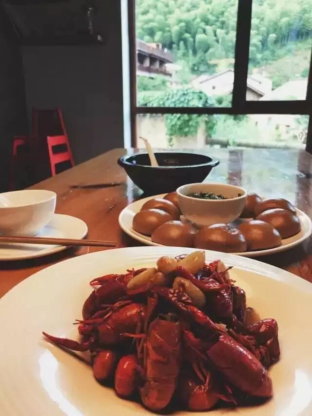凡是在“猪栏”住宿的客人都可以在这里吃到免费的早餐,也可在古老的徽式大厅品尝由老板娘营养搭配的特色乡村菜肴,原材料都是纯天然的。