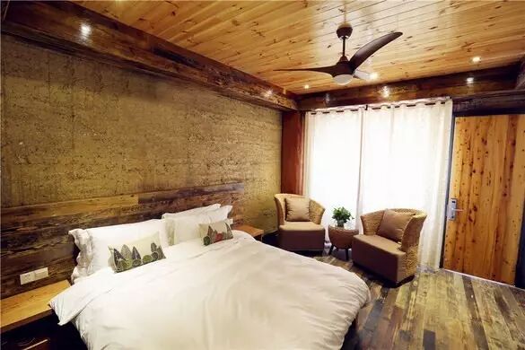 青溪山居房间仅有6间,有大床房和双床房可供选择。二楼套房挑高屋顶是竹竿一根一根拼成,层高比一般房子高,带有loft风格。