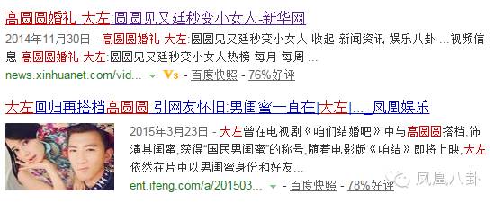 大左和高圆圆因合作电视剧《咱们结婚吧》相识,剧中大左扮演高圆圆的男闺蜜,而剧外恋人也“假戏真做”,成为了挚友。