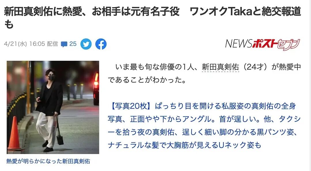 尽管互相有好感,当时的情况也不方便过多交往,最后A子通过朋友打听到新田真剑佑的联方式,聊聊近况之类的话题,之后很快就跟老公离婚,和新田真剑佑交往也是顺理成章。”