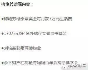 临终前,梅艳芳为了母亲着想担心母亲大手大脚过日子,也不希望哥哥依附母亲生活一事无成,所以遗嘱中写明母亲直到去世之前,每个月可以领到7万元的港币作为生活费!