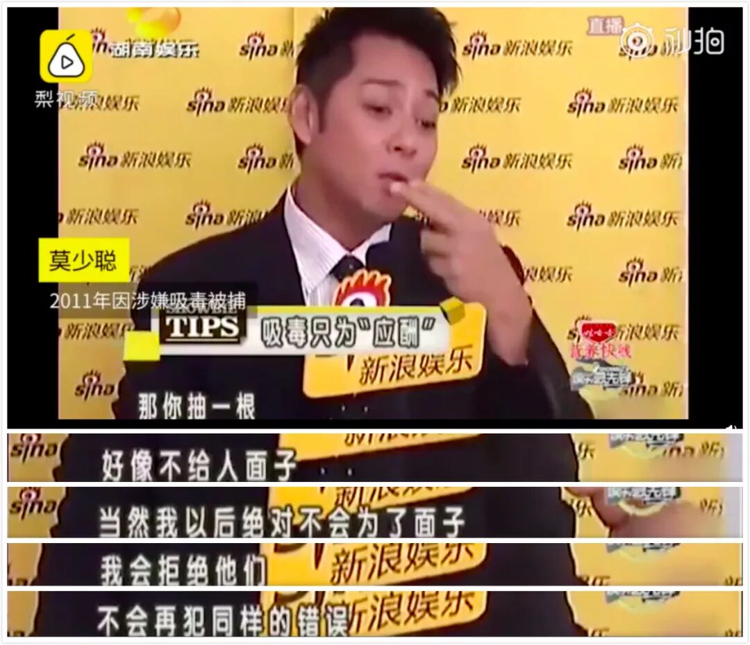 而演员莫少聪曾经在1992年出演武侠剧《黄飞鸿之Ⅱ男儿当自强》中获得29届台湾电影金马奖最佳男配角提名 ,他也是洪欣的前夫。他曾经在采访中说因为在酒会上应酬怕不给人面子而吸毒,他说当然以后不会为了面子再却接触这类东西了,会懂得拒绝别人,不会再犯同样的错误。
