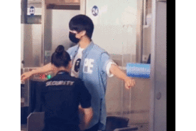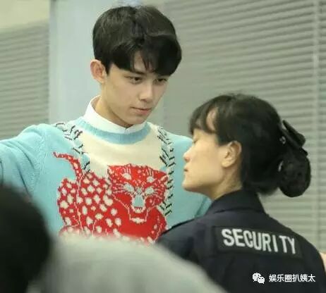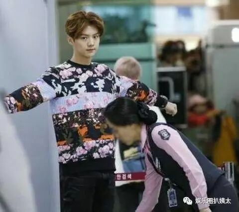 王俊凯,安检姐姐手伸进衣服了,头羞涩地转向一边。
