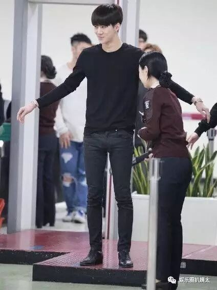 知道自己个子高,还很配合地低头,方便安检员工作。