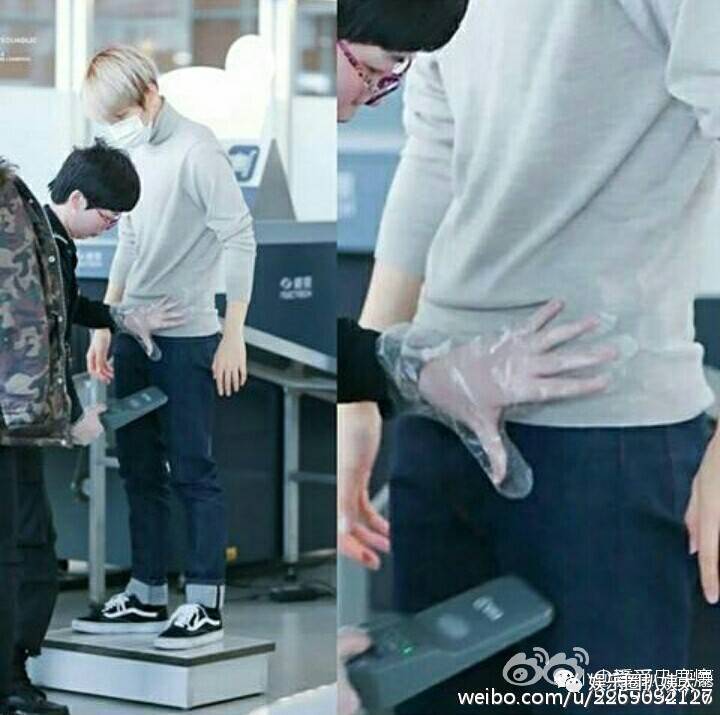 伯贤这张……安检员的手在摸哪里?!