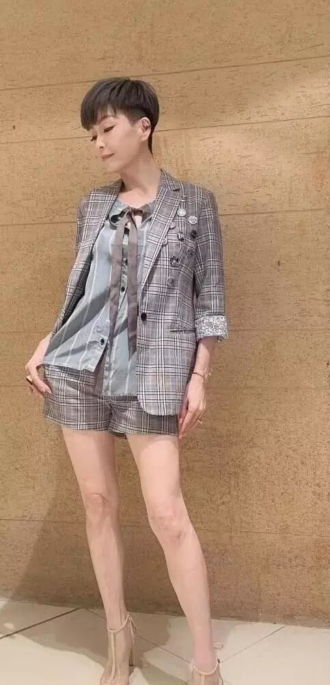 格纹的西装套装很有休闲风,像这样的服饰在日常生活中搭配,能让自己看上去更加的洒脱潇洒。而且伍咏薇的身材比较纤瘦,穿上这样宽松的衣服,让她整个人看上去更有曼妙的曲线。在里面搭配系带的竖条纹衬衫,灵动又飘逸,也让西装呈现出更多的女人味。