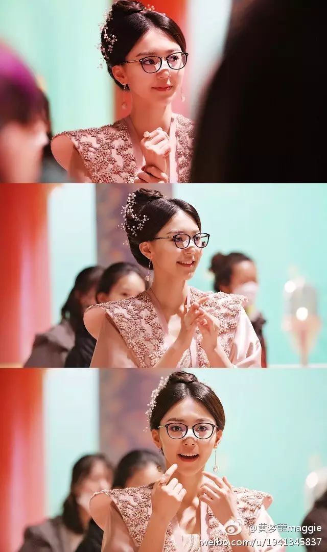 戏外的黄梦莹,会在没戏拍的时候,安静地坐在一边,插上耳机学习英语。