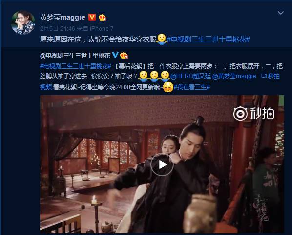 因为给夜华穿衣服时找不到袖子NG好几次,被赵又廷吐槽:“你这嫁嫁嫁的出去吗?”
