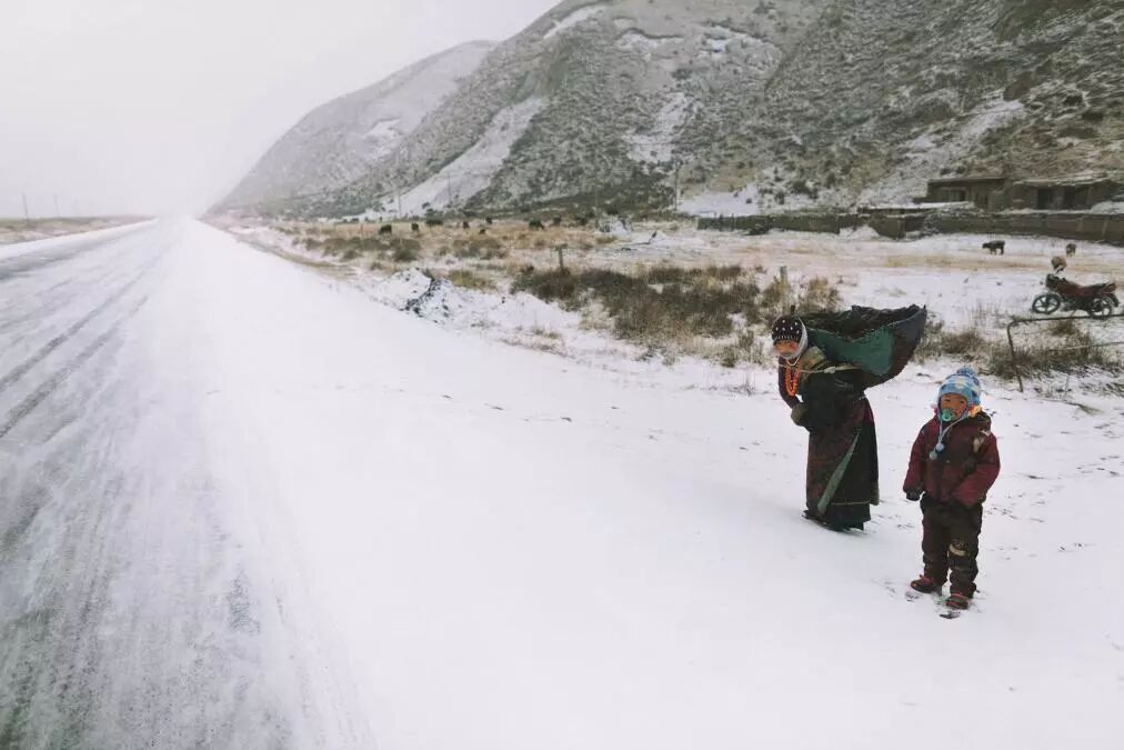 另一张显示文化差异的照片我也非常喜欢。拍摄的时候正下着大雪,温度只有零下10度。这些孩子们正背着柴火爬着喜马拉雅山脉的山路。我不知道他们要这样孤零零地徒步走上多远的路。我能说他们的语言,便跟他们说话,他们只是在风雪中停了下来,盯着我看。我指了指自己的相机,竖起大拇指询问他们我能不能拍照,他们点了点头,但依旧只是看着我和我的自行车,似乎正在思考:“他在这干什么?”后来我骑车离开,他们依旧在风雪中行走,我感到非常难受,但这就是他们的生活方式,他们或许已经习惯了这样的寒冷天气。