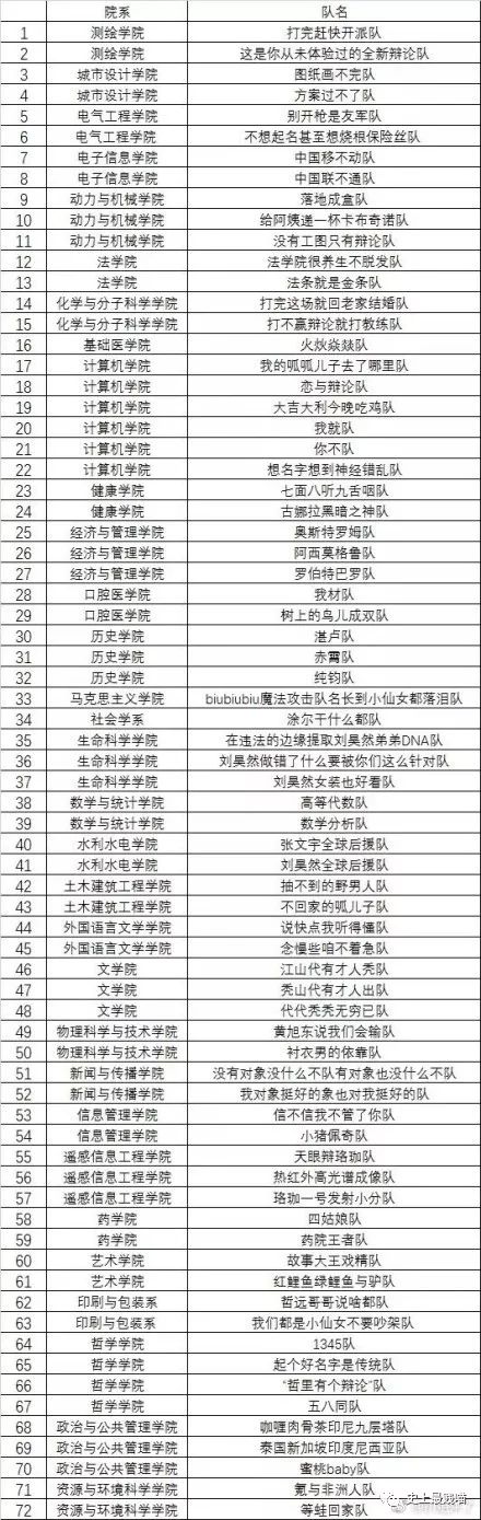我是小乌龟哇:今天看到的武大辩论队奇葩名