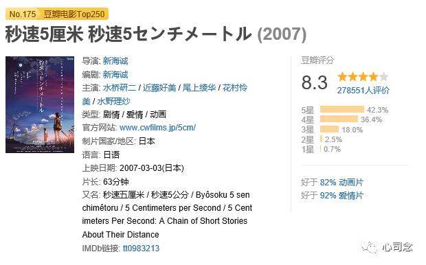 少年时,贵树(水橋研二配)和明理(近藤好美配)是形影不离的好朋友,可很快,一道巨大的鸿沟便横亘在两人中间:明理转学,贵树也随着父母工作的调动搬到遥远的鹿儿岛。在搬家前,贵树乘坐新干线千里迢迢和明理相会,在漫长的等待后,茫茫大雪中,两人在枯萎的樱花树下深情相拥,并献出彼此的first kiss,约定着下一次再一起来看樱花。