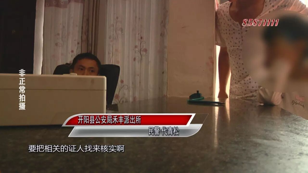 开阳县公安局禾丰派出所 民警 代青松:我们要下去核实清楚,要把相关的证人找来核实啊,她连她女儿都找不到,我们最起码要核实这个姑娘是从哪里来的,是不是偷的、拐的,或者是卖的。