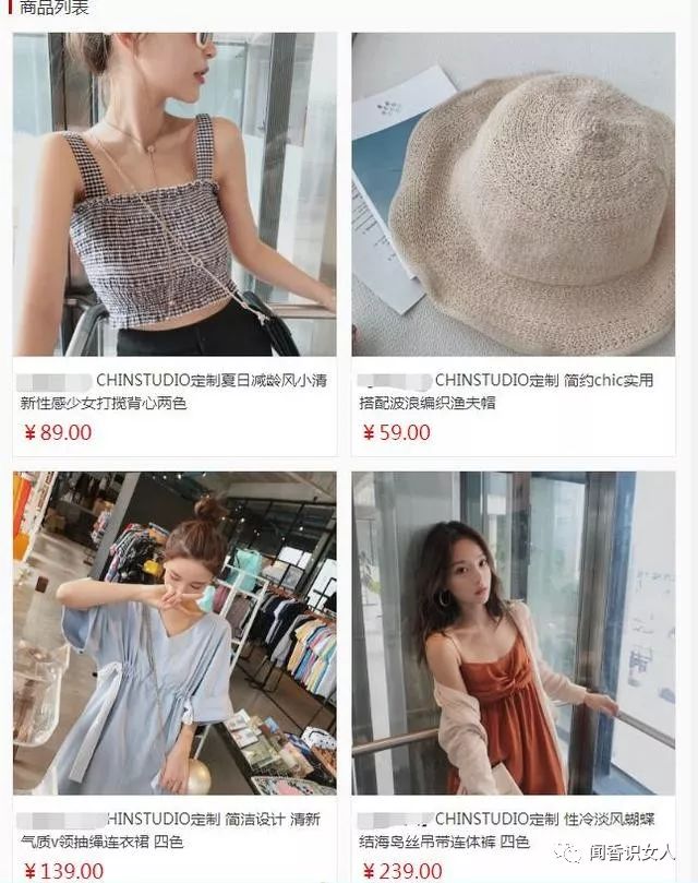 点进微博链接里看,就是模特穿的打版图了。来感受一下,她网店的风格跟自己的甜美可爱风完全不一样,满屏都是一股性冷淡的味道。