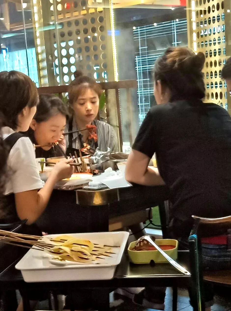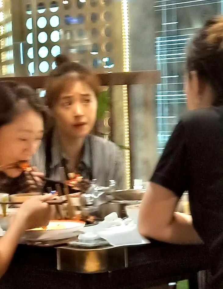吃火锅的时候,蒋欣穿着一条宽松的连衣裙,显得很壮,前段时间才减肥成功的她,估计反弹了。