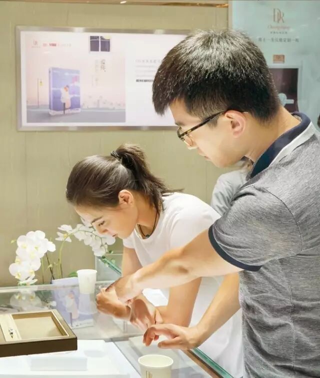后来他亲手挑选了男士一生仅能买一枚的DR钻戒