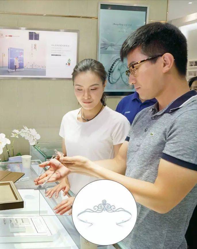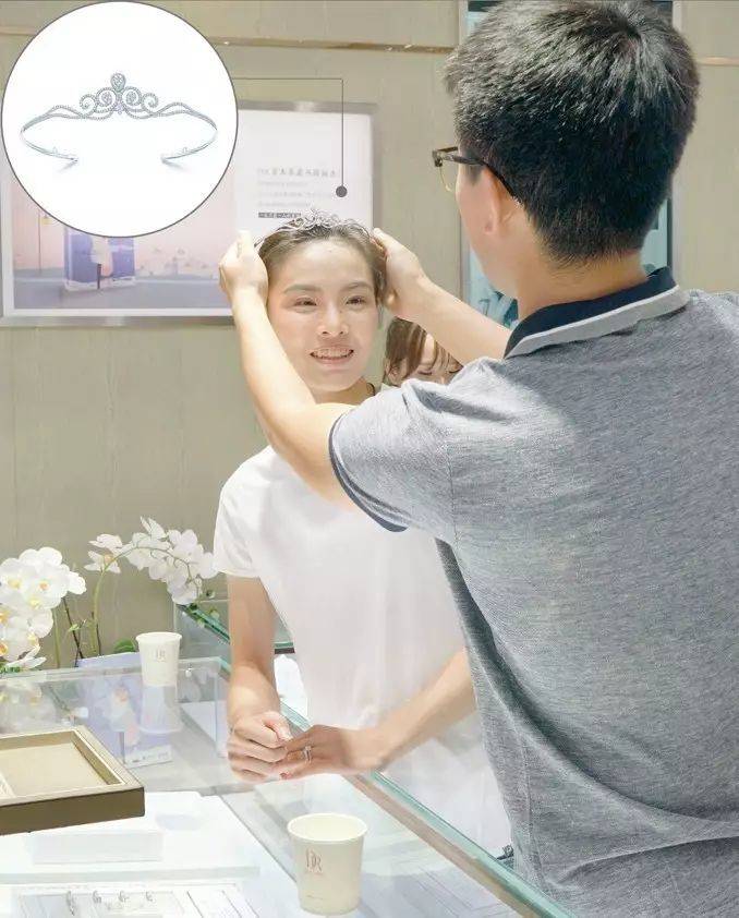 兴致冲冲地为吴敏霞试戴了这款My Queen皇冠